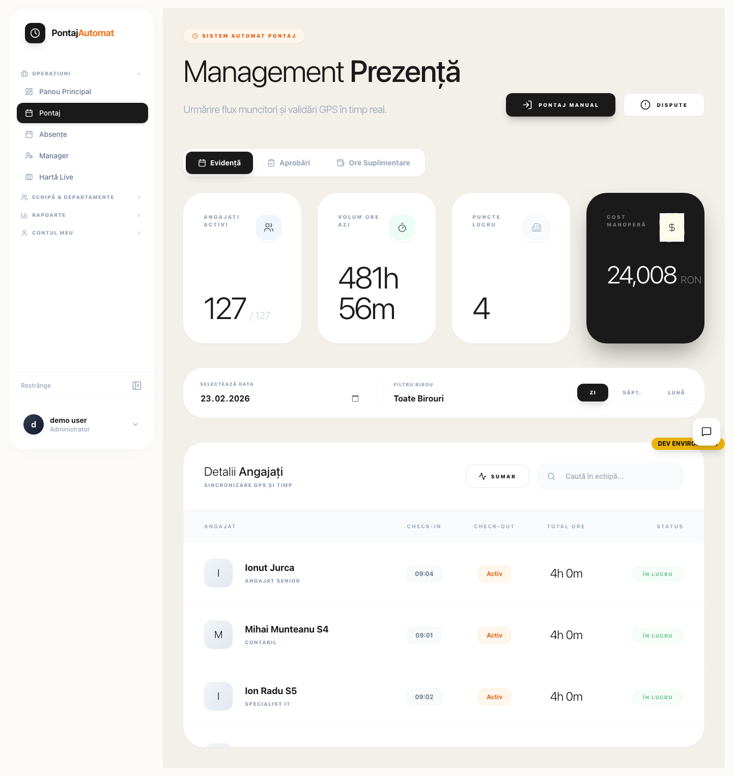 | Ți-e teamă de implementare | Rollout pe 2 șantiere | Offline |